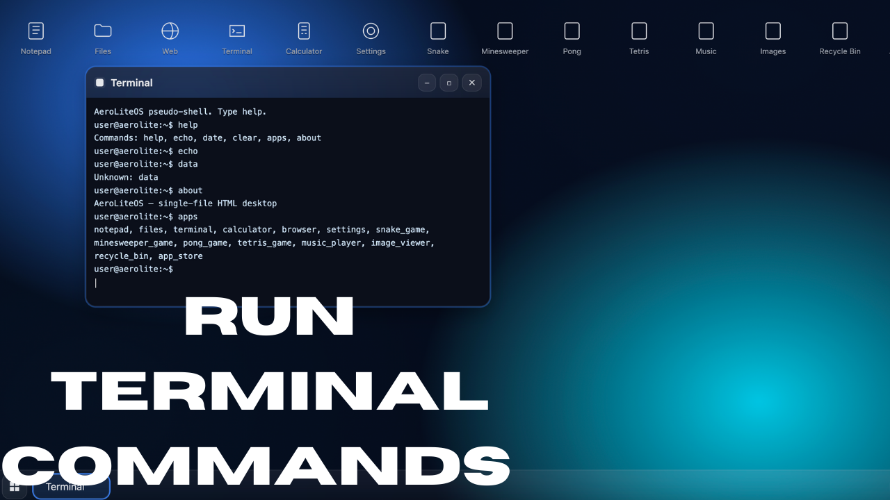 AeroLiteOS is a opensource, web-based operating system built entirely in HTML, CSS, and JavaScript. It offers a sleek, modern interface and allows users to experience OS-like functionality directly in the browser, emphasizing speed, simplicity, and accessibility.